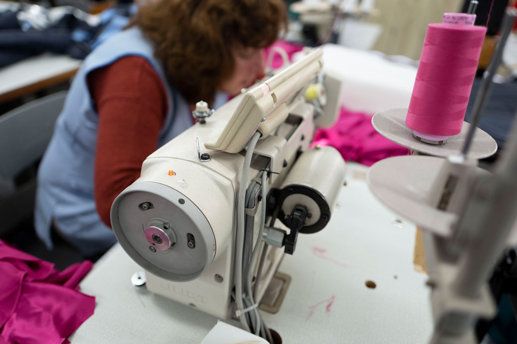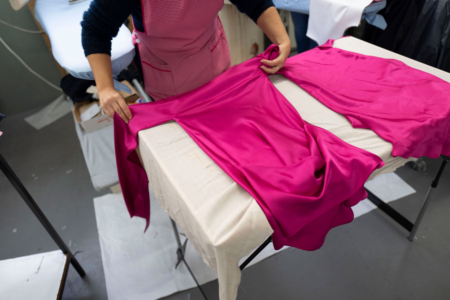 This small family-owned factory made all of our blouses in the collection. The factory has more than 20 years of experience and is dedicated to the manufacturing of clothes for men and women. The combination of the highest quality fabrics with expertise and accuracy results in exclusive and elegant pieces, which you can enjoy. During our visit, we could follow how our evening top was carefully put together by the proud seamstresses. What we were able to see is the tremendous amount of handwork on every detail when working with silk from cutting to interfacing and sewing and finally steaming. Contrary to mass production and due to the delicate fabric each item needs to be touched by hand and therefore requires time and care.